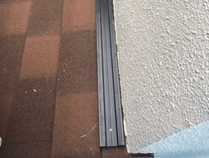 壁際に雨押え板金を取付けて上部をコーキングで仕上げて完了です。