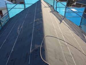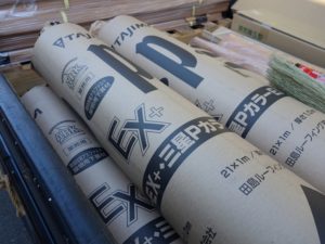 防水シートは、田島ルーフィングのPカラーEX+(改質アスファルトルーフィング)を使用しています。