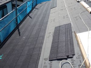 新しい屋根材、「ディプロマットスター」を全面に張り上げていきます。