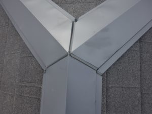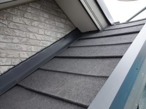 雨押え板金を、外壁との取いに新設してコーキングで仕上げています。