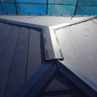 各種役物取付け後、新しい屋根材(タフワイド)を取付けていきます。