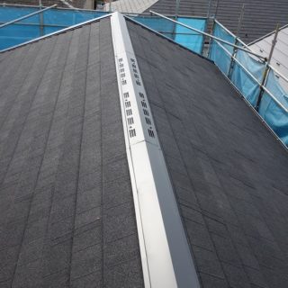 下地材に新しい棟包みを取付けて屋根カバー工事の完了となります。