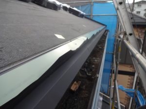 ケラバ部の捨水切りにケラバを取付けていきます。