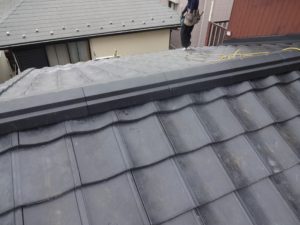 棟の部分は、下地新設後に乾式自在面戸Wを漆喰などの代わりに取付けます。