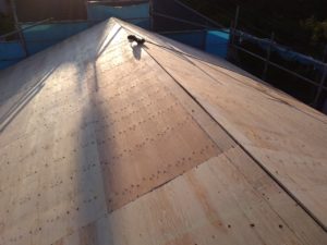 既存瓦をすべて撤去して、防水シートの状態にします。