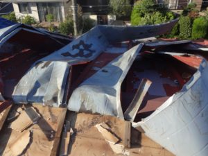 調査に伺うと、一部半面の屋根材と防水シートが剥がれており、雨が降ったら直ぐに雨漏りしてしまう状況でした。
