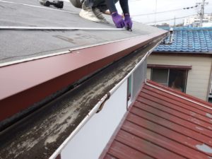 既存の軒樋を解体して、新しい雨樋に交換していきました。