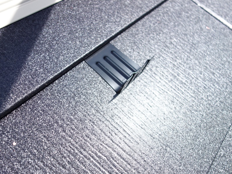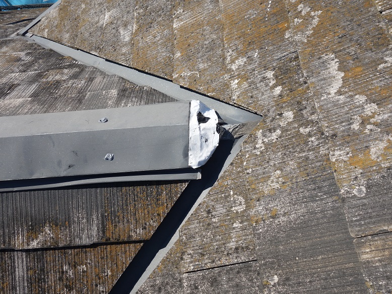写真は、剥がれてしまった板金材を応急処置で、再度取付けた状態となります。