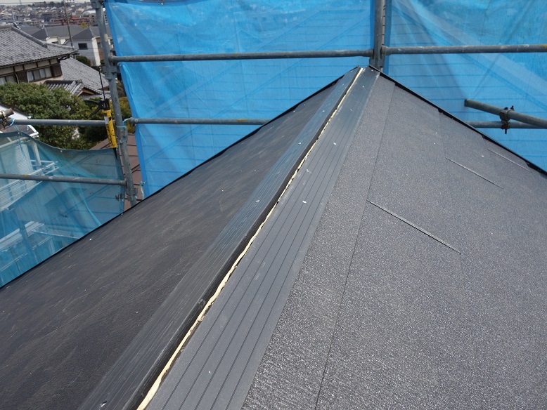 昨年の台風の影響で、棟板金という役物が剥がれ飛んでしまいました。