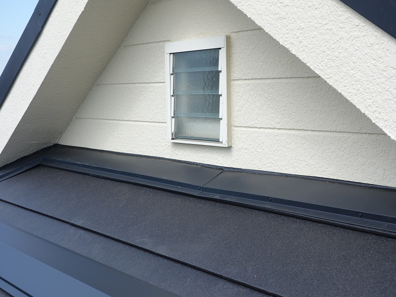 谷部分には、下地以外にも取合いを板金でカバーして仕上げていきます。