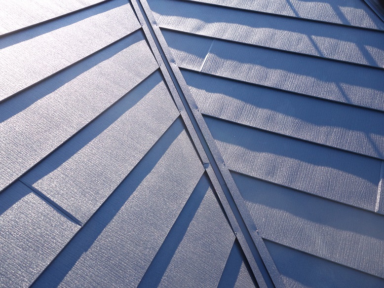 各種役物を設置後に、新しい屋根材「スーパーガルテクト」を張っていきます。
