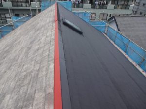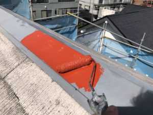 板金の下地が完了したら、屋根材の下塗りを行っていきます。