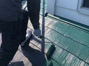 仕上げに、上塗り(ヤネフレッシュSI)を塗っていきます。