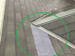 谷部分は、化粧スレ―トの真物を加工して、コーキングで接着して取付けます。