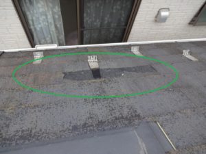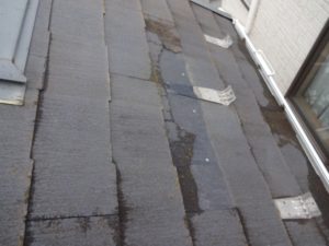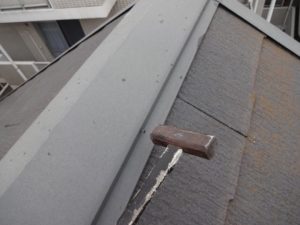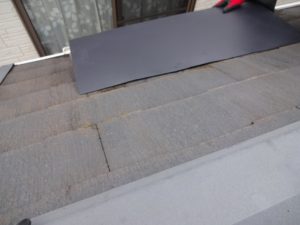屋根修理の内容は、スレート屋根材に板金をカバーして修理させていただきました。