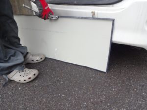 割れた箇所の寸法を計測して、現場にて板金を加工していきます。