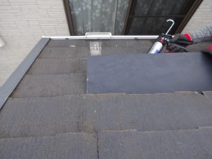 横浜市港南区のG様邸にて、化粧スレート屋根材の修理を行いました。