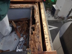 さらに木下地を剥がすと、内部も腐って傷んでいます。