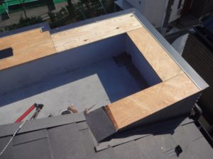 内部の補強を行い、新規木下地(ベニヤ)を張り上げていきます。