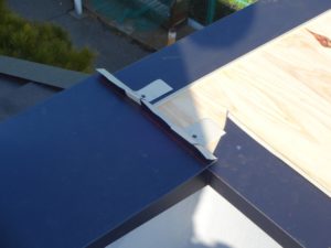 重なり合う板金の取合いに雨水が入り込まないように、板金に折り目加工していきます。