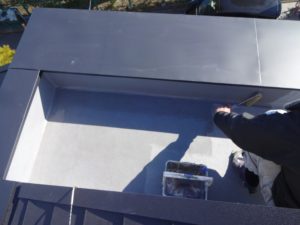 屋根材と笠木の取合いには、コーキング処理を行っていきます。