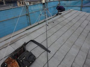 屋根工事にあたり、仮設足場の設置を行ってから作業を開始していきます。