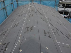 大屋根同様に、防水シートを張り、各種役物を設置していきます。