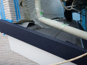 取合いに雨水が入り込まないように、コーキングで防水処理を行っていきます。