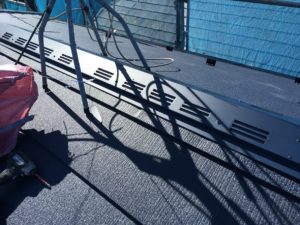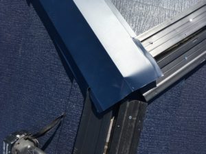 屋根材新設後、中央部に樹脂製のタフモックを下地材として設置していきます。