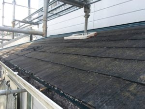 屋根材の表面には、「コケ・カビ・汚れ」が、全体的に発生しています。