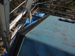 平部を葺き終えたら端部に、本体と同質のケラバを取付けていきます。