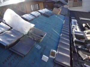 粘土瓦と一緒に、葺き土と瓦桟も撤去していきます。