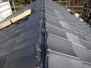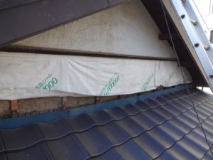 棟に金具を設置後に、タフモックを取付けて金属の面戸を被せて設置していきます。