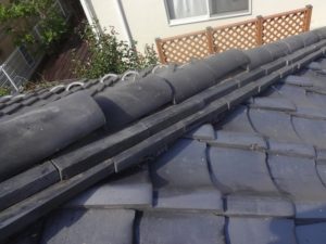 銅線が切れても、棟瓦は重たいため強風程度では、なかなか崩れません。