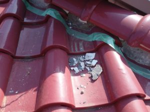 棟瓦の詰め物が経年劣化で剥がれ落ちてきたため、お問い合わせを受けて対応させていただきました。