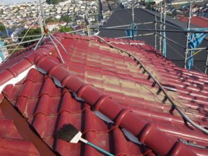 漆喰補修と瓦補修、温水パネル撤去が完了したら、全体的に屋根の清掃を行い完工です。