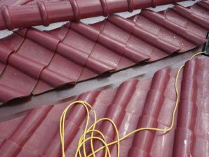 棟瓦の補修と一緒に、古くなった未使用の「温水パネル」も処分して屋根を軽くしています。