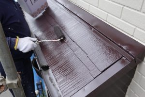交換した棟板金やケラバの板金材に下塗り(錆止め)を塗っていきます。