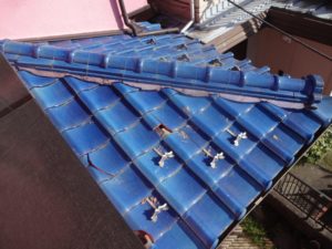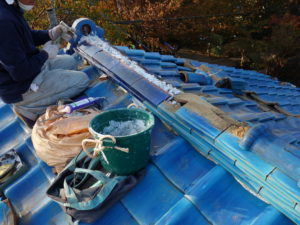同日、別現場の横浜市A様邸の棟瓦の積み直し工事も行いました。