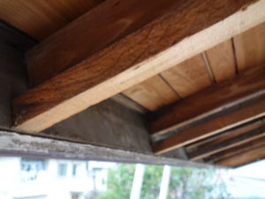 剥がれていた端部は、垂木を補修してベニヤを取付けていきました。