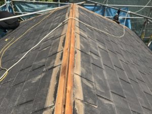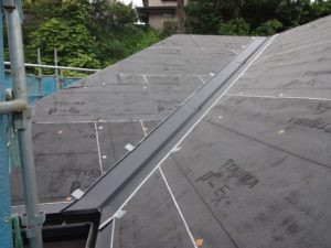 新規屋根材を設置後、棟役物を取付けていきます。