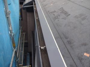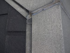 面の重なり部分に谷板金を取付けていきます。