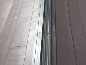 軒先、ケラバの役物取付け後、新規のガルバリム鋼板(フッ素)を取付けていきます。