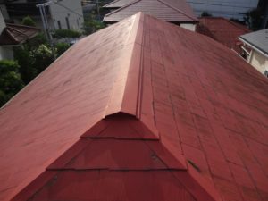 既存の屋根材は、化粧スレートで数十年前に塗装をされています。