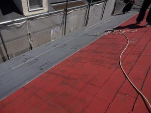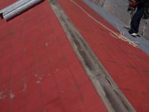 下地がフラットな状態になりましたら、防水シートを張っていきます。