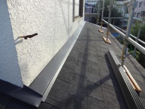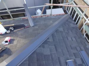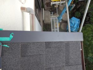 屋根と外壁の取合いに雨押え板金を取付けていきます。