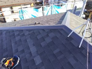 棟板金の取合いにもコーキングを打って仕上げを行っていきます。