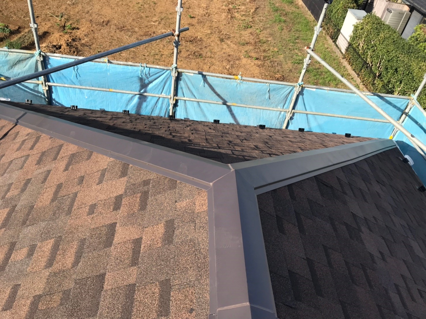 横浜市青葉区のM様邸にて、アスファルトシングル材でカバー工事を行いました。