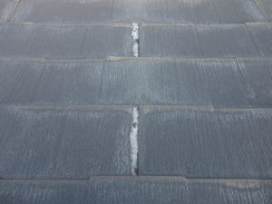 屋根材が雨水を吸収して全体的に表面の浮きや、めくれがでてきています。