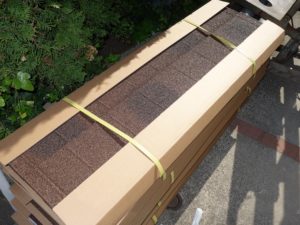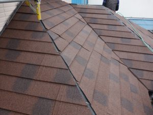 新規屋根材には、ディートレーディングの「ディプロマットスター(カフェ)」を使用しています。